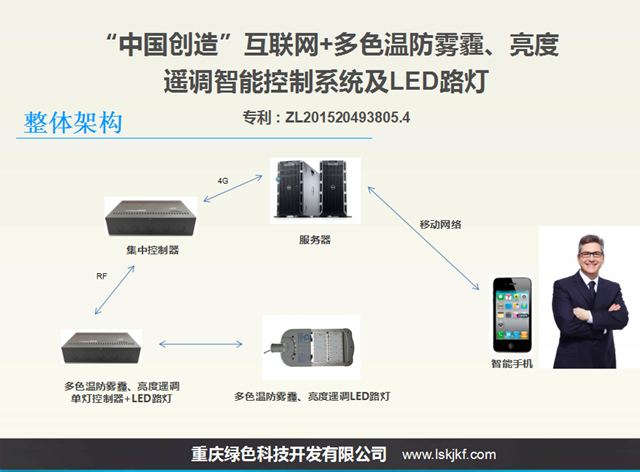 50 years ago, the United States Ge Corp developed the world's first red LED, opened the history of LED. A few years ago, Internet plus color temperature, brightness adjustable anti fog haze remote manufacturing technology of a new generation of LED intelligent lighting applications (hereinafter referred to as: the technology) in the national high-tech enterprises in Chongqing science and Technology Development Co., Ltd. green fruit. The birth of this technology is a revolution in the manufacturing history of LED intelligent street lamps in the world. It fills the gap of the city's street lamp "multi-color temperature" and intelligent lighting. The technology is the strategic emerging industries, in line with the central "innovation driven development strategy" and "supply side structural reform, in the field of street lighting will replace ordinary monochromatic temperature LED lamp manufacturing technology backward. This technology includes intelligent controller, intelligent terminal, anti fog and haze of color temperature adjustable brightness controller, color temperature, brightness and anti fog haze remote intelligent remote control LED intelligent street lamp "and" intelligent hardware and software programming, automatic induction PM2.5, temperature, humidity, voltage, current, video etc. a new generation of intelligent sensing technology application technology, compatible with other lights intelligent remote control system. The patent technology "Internet plus multi color LED lights, tunnel lights and six remote control system (ZL201520493805.4)" by the science and technology novelty has won the "novelty search report" (No: J201508016831), that is "China creation" advanced technology the one and only LED lamp application of intelligent manufacturing technology; it has been included in the "2015 year of science and technology results the SMEs of Chongqing city transformation project" (small enterprises in Yuzhong 2015 No. 188), approved the establishment of Chongqing City Engineering Research Center [LED Intelligent Control Technology Chongqing 2015 technology development and reform 1865]; has been included in the "2016 annual Chongqing City Technology innovation project," guidance "in 2016 Chongqing city Internet plus pilot the demonstration project". The technology also includes time, preset, time and automatic remote control and other control modes. Based on the ordinary monochromatic temperature LED street lamp control system, using the technology of the Internet, 4G mobile communication through wireless communication, wireless remote intelligent control system, centralized controller from server to issue orders for the interconnection mutual information centralized controller log kilometers each terminal controller, always single lamp color temperature and brightness. Anti fog and haze remote monitoring and alarm functions. This technology has four major characteristics: (a) by PM2.5 sensor, temperature sensor, ultrasonic sensor, radar remote camera automatic acquisition of environmental protection, meteorology, transportation, security and other information, analyze the information sharing and data services through the cloud platform. (two) in different climate and season, according to the change of climate and environmental sensory needs people, through the temperature sensor, humidity sensor, PM2.5 sensor, intelligent remote control to achieve a variety of lighting lamps, color temperature, improve the human sensory comfort. Chongqing City Cai Yuan Road Yuzhong district as an example, automatic acquisition of temperature, rain, fog and haze data of the year by the remote intelligent control system, intelligent lighting will be adjusted to the most comfortable and safe lighting color temperature (3000K-5700K). (three) the brightness of light can be remotely intelligently adjusted. G50 Chongqing Chongqing Fuling Expressway in Tieshan, Huashan, Huang Caoshan, Ping Village, concentric Fort Temple tunnel lighting as an example, in different periods of light adjustment for a variety of lighting mode, including "daytime mode", "night mode", "summer mode" and "winter mode" and "anti haze mode", which greatly improve the saving rate, and effectively solve the tunnel lighting for saving electricity is widely used in the control loops closed or interval caused by lighting dark area lights, traffic safety problems. (four) the important parameters such as luminance uniformity, illuminance uniformity and energy saving rate are all better than the national standard of LED street lamps. This new generation of LED intelligent street lamp, a lamp can be used when more than one ordinary monochromatic temperature LED street lamp, the cost performance is higher, can improve the light efficiency of 10%, and prolong the service life of lamps more than doubled. Intelligent color matching and dimming, more comfortable and energy-saving. In September 2013, the Chongqing Municipal People's government support, this product has been in Chongqing District of Yuzhong City lawn Yuanjiagang tunnel, eling tunnel, Jiulongpo chenjiaping tunnel under the application of the technology. Chongqing City Lighting Management Bureau and Jiulongpo District of Chongqing City Street Management Office of tunnel engineering test on lawn Yuanjiagang, compared with the corresponding replacement of the original lamp, energy saving rate of 70.5%. The use of this technology in two years time, Chongqing Academy of Metrology and quality inspection in accordance with the "city road lighting design standards" CJJ45-2006 "and" GB/T5700-2008< > lighting measurement method for testing, the results meet the standard, and the technical indicators are better than ordinary monochromatic temperature LED lamp. The technology in the G50 of Chongqing Chongqing Fuling Expressway in Tieshan, Huashan, Huang Caoshan, Ping Village, concentric Fort Temple tunnel; Jiulongpo Shi Xin Lu, Shiping bridge tunnel; Yuzhong Caiyan; Nan'an District longhua