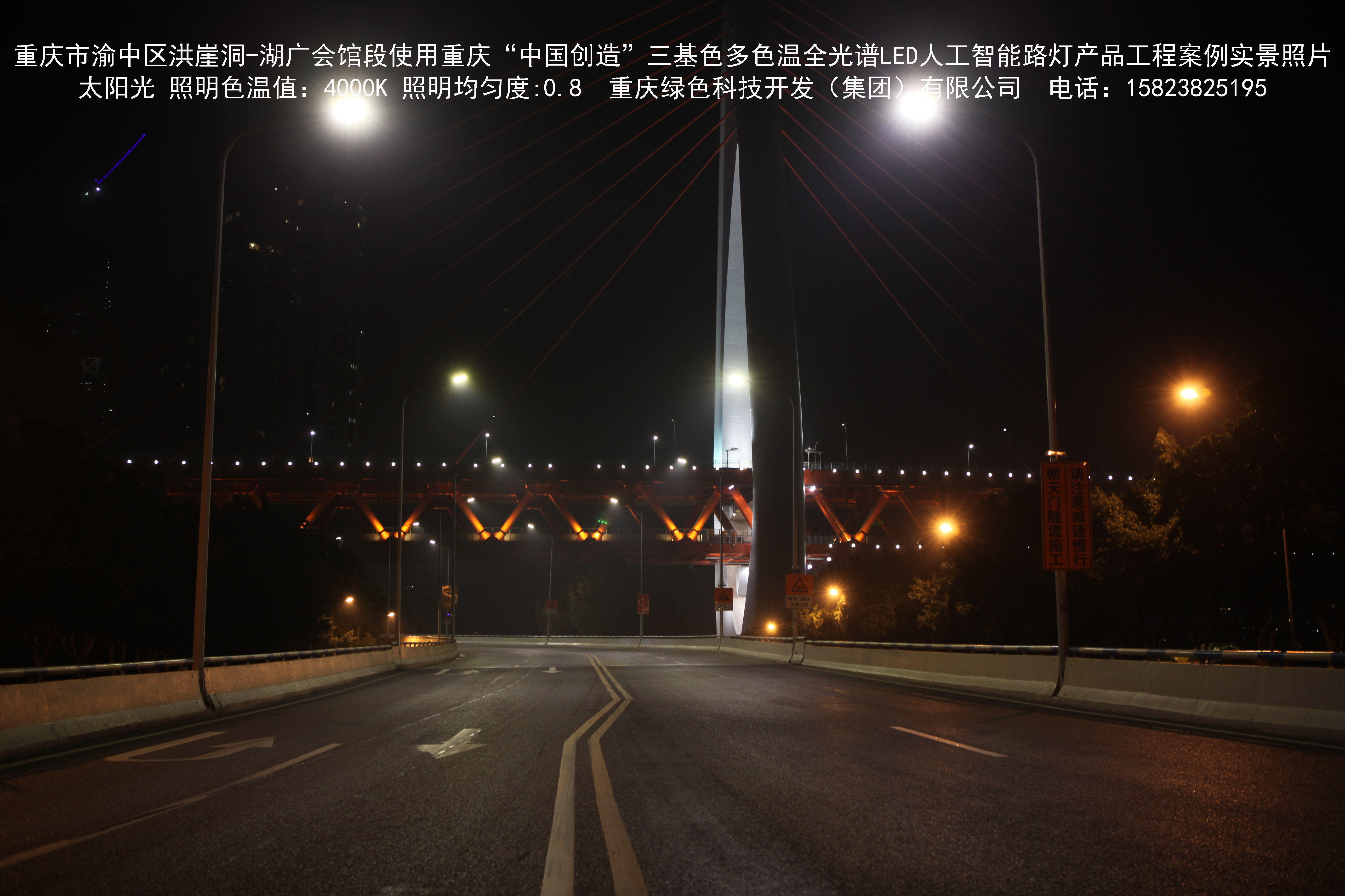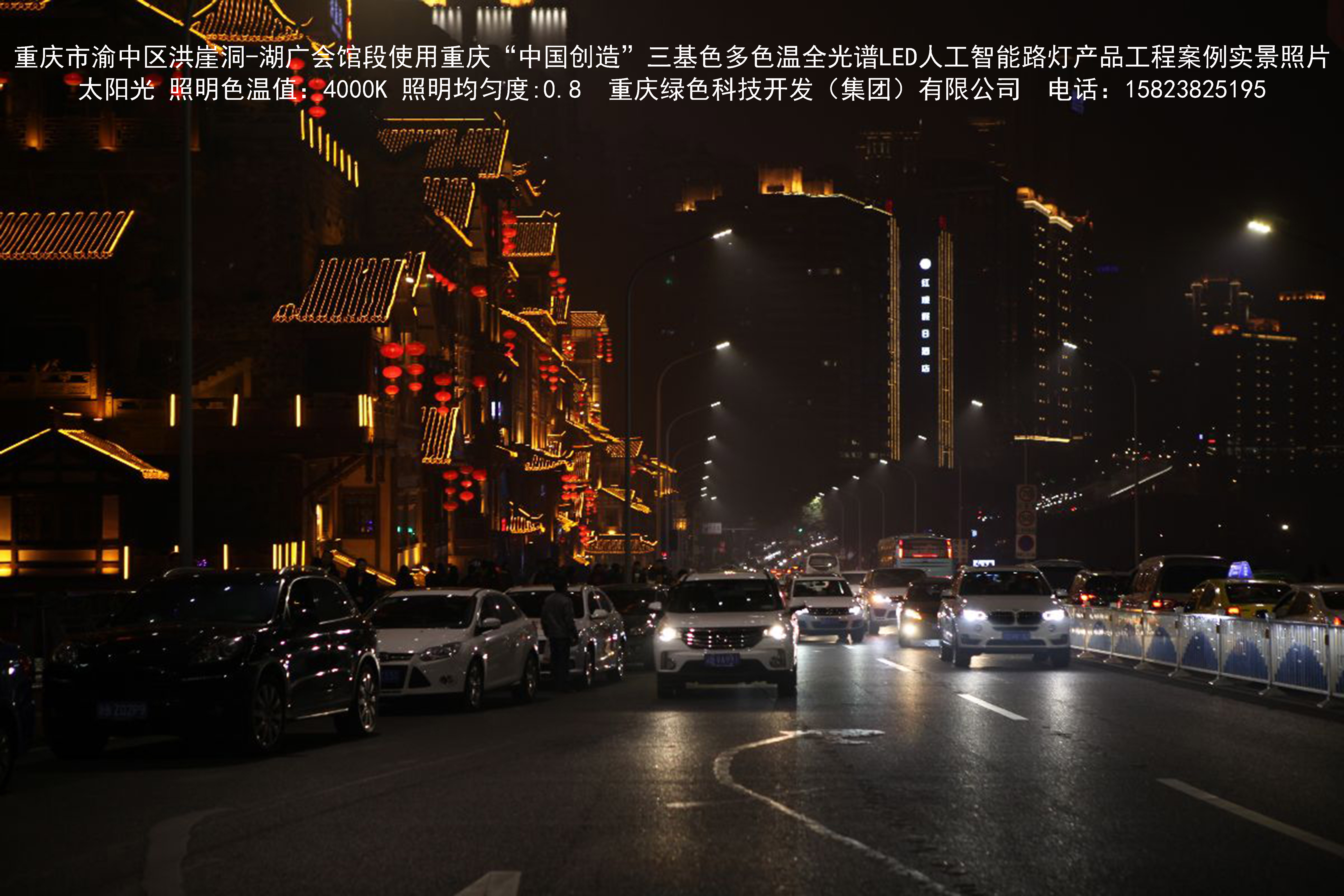 2018年12月,重慶市城市照明管理局使用我司自主研發制造的重慶“中國創造”三基色多色溫全光譜LED人工智能路燈系列產品,實施了渝中區市政設施品質提升工程。該工程已全面竣工。工程實施后,極大地提高了城市照明清晰度、燈光均勻度、舒適度。通過智能終端實現單燈感知、線纜防盜報警,與原高壓鈉燈相比,節能率60%以上,有效解決了關閉控制回路或間隔關燈方式造成的照明暗區,確保行人和車輛通行的安全,實現城市路燈照明系統的智能化管理,推進了智慧城市建設。