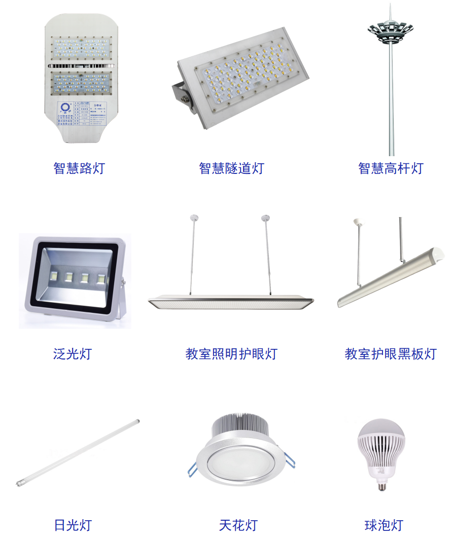 圖4 “中國創造”國際領先物聯網紅綠藍黃白LED混光技術制造物聯網五基色全光譜多色溫單燈感知LED智慧路燈等室內外照明系列燈具產品
