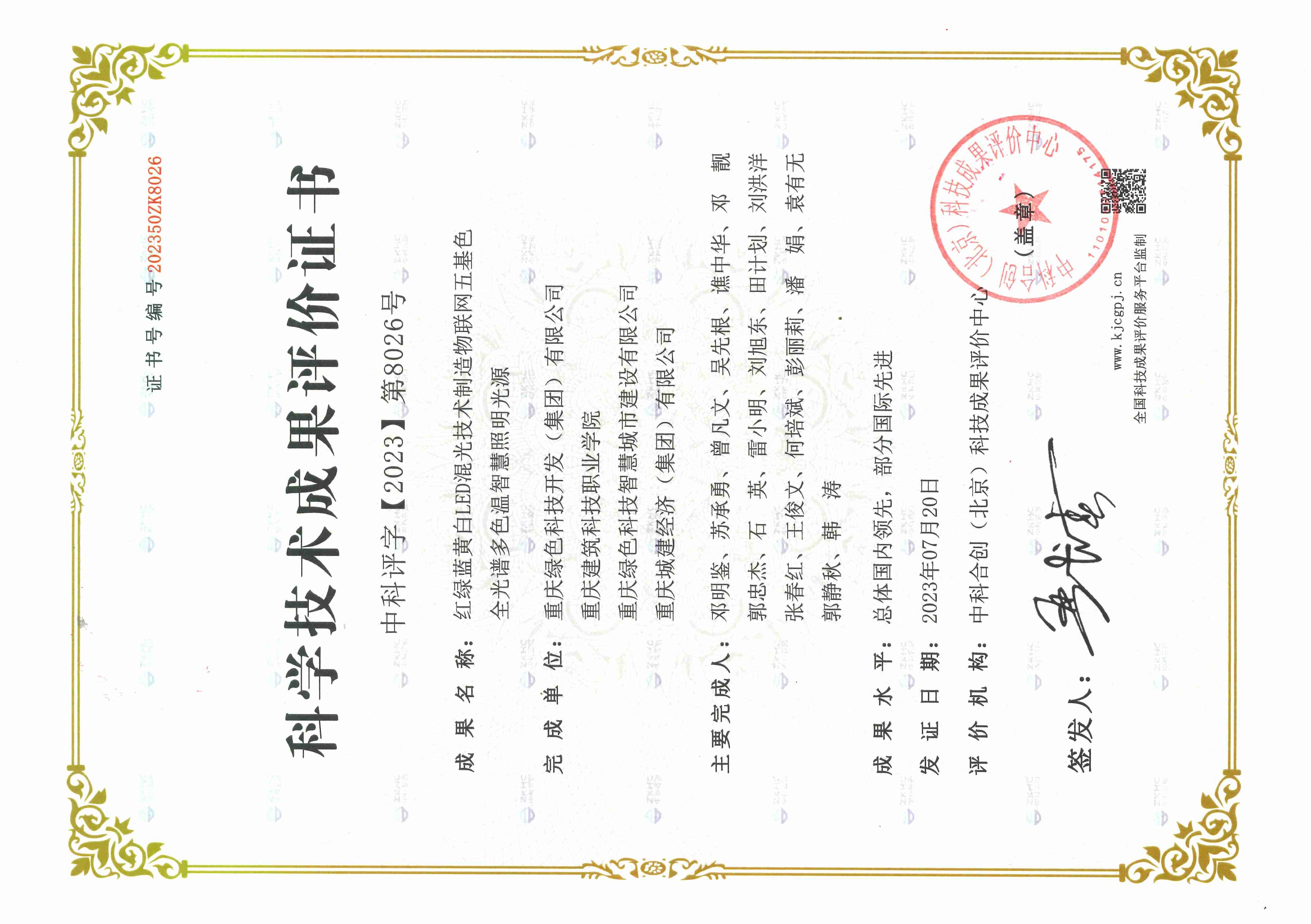 2023年7月11日,中科合創(北京)科技成果評價中心組織專家,在北京對我司“紅綠藍黃白LED混光技術制造物聯網五基色全光譜多色溫智慧照明光源”項目進行了科技成果評價。
